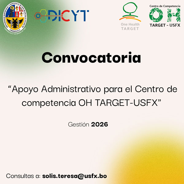 El Centro de competencia OH TARGET- USFX busca un profesional para el puesto de «Apoyo Administrativo para el Centro de competencia OH TARGET-USFX Gestión 2026». Entre las principales funciones se encuentran la realización de actividades de difusión de las actividades relacionadas con la Red del CIH y actores locales, sistematización continua de las actividades realizadas en el Centro, apoyo en la organización de eventos con la Red Latinoamericana de CIH y el proyecto OH TARGET.